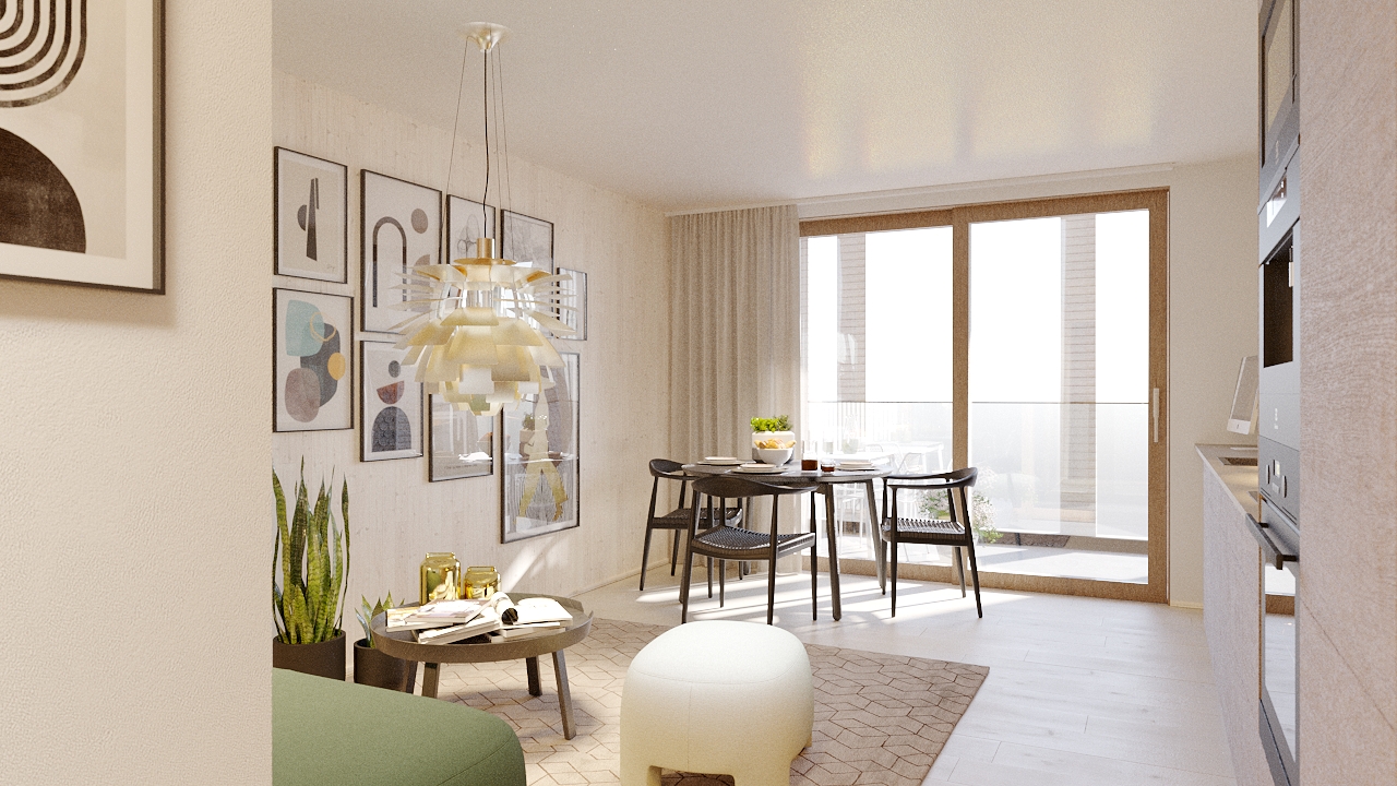 I kvarterets första bostadsetapp är material och inredning noga utvalt för att ge smarta, snygga, digitala och hållbara lösningar. Ventilationen styr du till exempel via en app. Du öppnar dörren med en digital nyckel. De flesta av dina vitvaror är uppkopplade och du som bor här erbjuds Electrolux premiumservice på lägenhetens inbyggda vitvaror. Alla lägenheter har egen balkong eller utgång till den stora terrassen med all sin grönska.