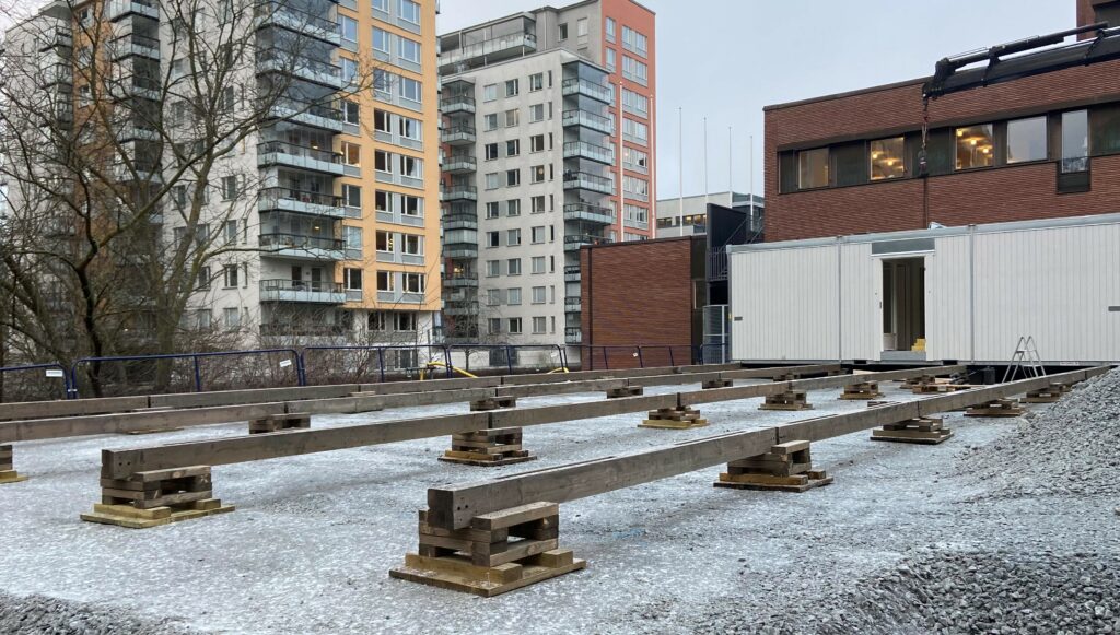 Nu är arbetet i full gång och 18 lågenergibodar håller nu på att installeras i kvarteret. Byggarbetsplatsens energiförbrukning kommer mätas och följas upp under produktionstiden. Tack Wangeskog Hyrcenter för att ni med era högt ställda mål vad gäller klimatsmarta lösningar, erfarenhet och kunskap hjälpte oss att få till detta!
